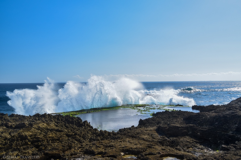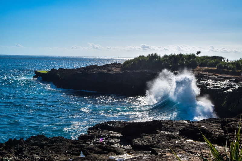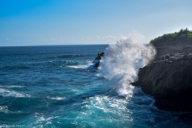 Nous partons ensuite pour découvrir et écouter Devil’s Tears, un incontournable de l’île. De quoi s’agit-il ? Ce sont en fait les assauts de l’océan qui viennent s’écraser par vagues successives sur les falaises de Lembongan provoquant un vacarme et une explosion de houle, pouvant monter jusqu’à 10 m au-dessus des falaises.