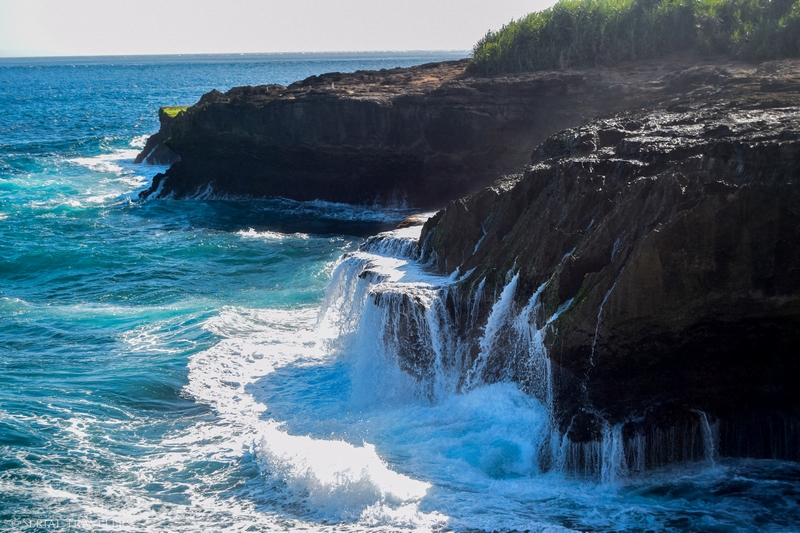 Nous poursuivons le long des falaises dessinant la côte et tombons enfin sur Devil’s Tears. Le fracas des vagues est très impressionnant ! Des cascades se forment en permanence et la puissance des vagues ne faiblit jamais.