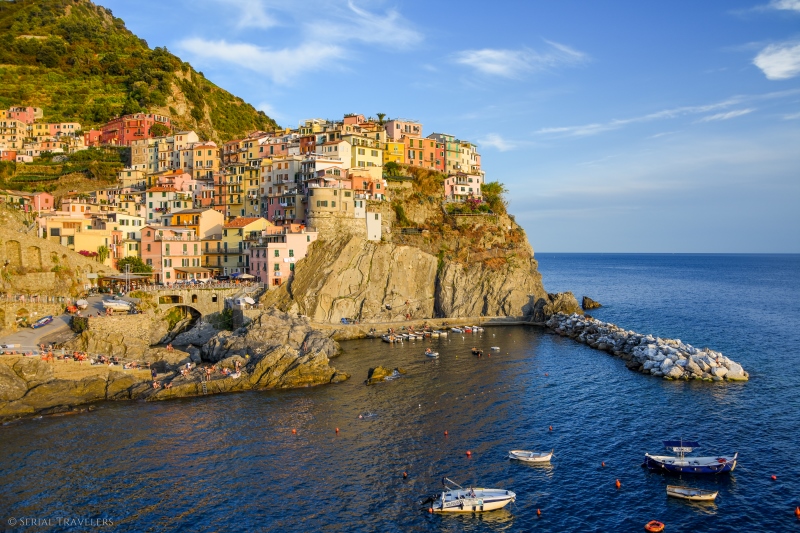 Riomaggiore est sûrement le village qui nous aura le plus marqué, grâce à une séance photo mémorable à 3, où Noah le facétieux nous aura fait tourner en bourrique ! Village le plus oriental des Cinque Terre, Riomaggiore est connu pour ses maisons et immeubles alignés le long d’une vallée étroite descendant vers la mer, jusqu’à une petite calanque abritant un minuscule port de pêche.