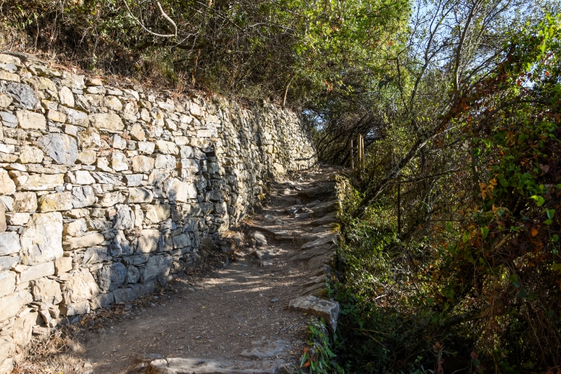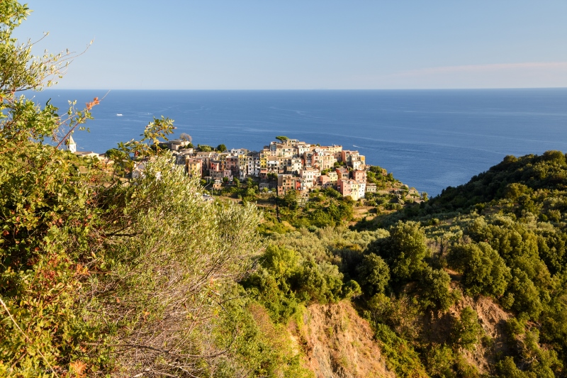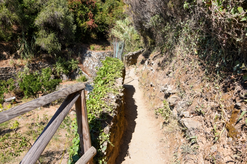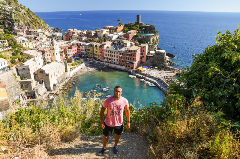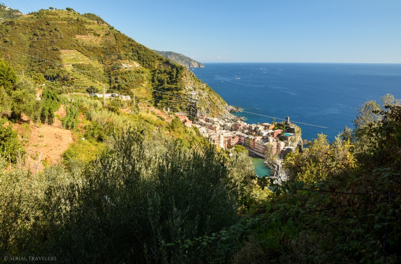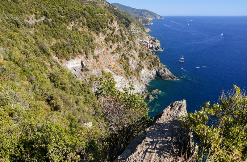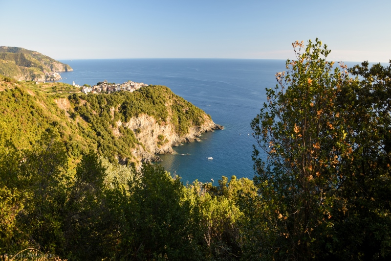 Thomas reprend donc le train à La Spezia en direction de Monterosso en débarquant du train vers 15H30, avant d’entamer la randonnée vers Vernazza. Il est déjà tard, mais la luminosité qui baisse promet des lumières plus douces pour faire de belles photos 🙂 Le sentier serpente au milieu des cultures de vigne en terrasse. Sans réelles difficultés, le sentier propose de superbes vues sur la côte ligure et notamment un panorama exceptionnel surplombant Vernazza et son petit port de pêche enclavé.