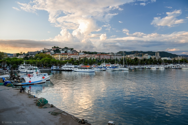 Nous arrivons finalement dans notre chambre d’hôtes de la Spezia vers 14H. Après s’être installés et pris un peu de repos, nous partons nous balader en direction du port en fin de journée. Peuplée de 93 000 habitants, La Spezia abrite un port important – d’où partent les bateaux pour rejoindre les Cinque Terre par la mer – ainsi qu’une immense base navale militaire donnant sur la Mer Tyrrhénienne. Situé à proximité immédiate de La Spezia, se trouve également le village de Porto Venere, un petit village de pêcheurs classé au Patrimoine Mondial de l’UNESCO. Cependant, par manque de temps et de motivation sur la fin du séjour, nous ne visiterons pas Porto Venere !