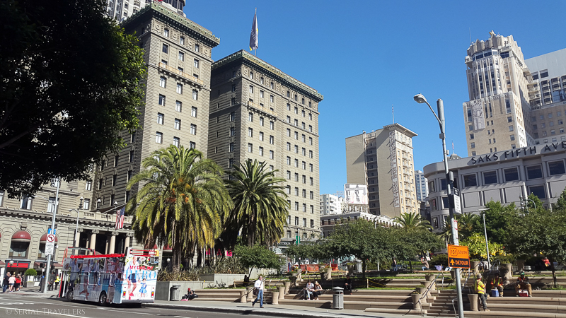 JOUR 19 Mardi 21 juin 2016. Après une nouvelle nuit de sommeil réparatrice, consécutive à notre première journée, nous revoilà sur pieds. Nous attaquons déjà notre deuxième et dernière journée à S.F., beaucoup trop tôt à notre goût 🙁 ! De nouveau, nous arrivons à Union Square vers 9H ce jour, en ayant pris le BART depuis Oakland où se situe notre motel Imperial Inn Oakland.