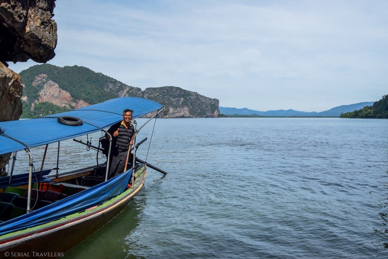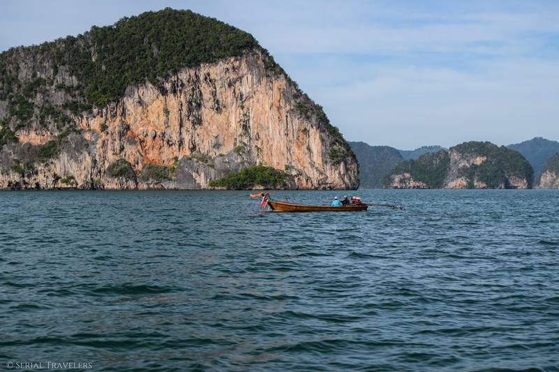 Après avoir longuement hésité et changé plusieurs fois les plans à cause de la météo capricieuse de Phang Nga, on a de la chance aujourd’hui ! Le temps est au beau fixe et la lumière promet d’être belle pour les photos ! La veille au matin, il pleuvait encore des trombes d’eau sans discontinuer, reliquat du passage d’un typhon arrivant maintenant au-dessus du Vietnam…