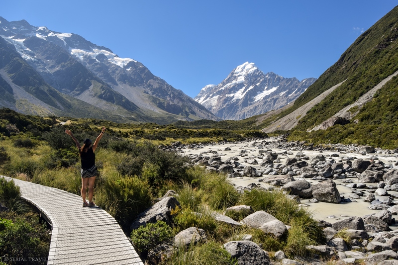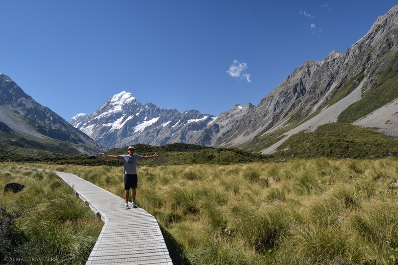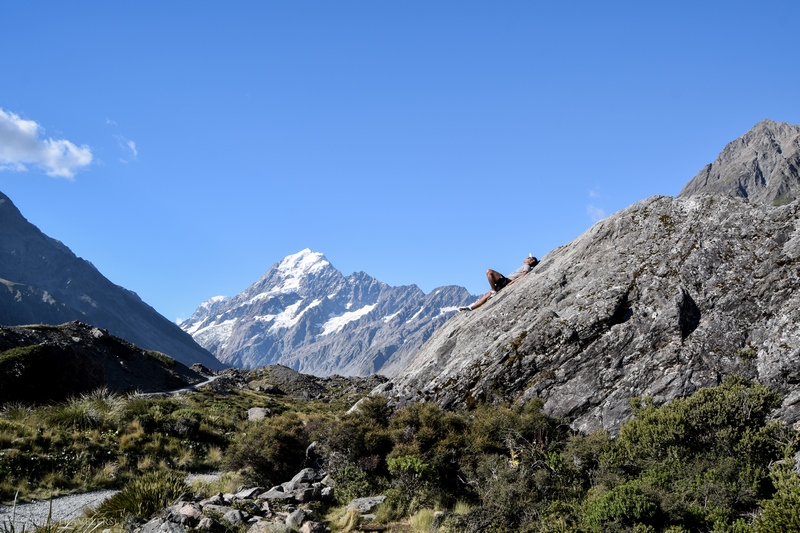 Arrivés sur les coups de 15H au Mont Cook Village, nous entamons la randonnée Hooker Valley Track, qui nous a été recommandée par le visitor center du lac Pukaki, quelques heures plus tôt. Cette courte randonnée est sûrement la plus populaire du parc national Aoraki / Mont Cook !