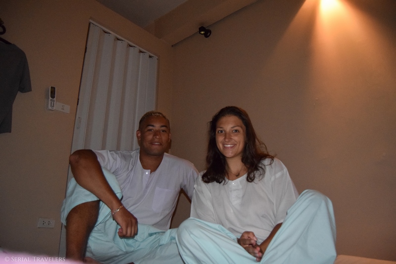 En attendant de pouvoir effectuer le check-in de l’hôtel, on décide d’aller manger un bout et surtout de tester un massage thaï, que Laura voulait absolument essayer ! C’est parti pour 1H de massage (ou de souffrance ça dépend de sa résistance physique^^) où l’on vous tord tous les muscles et tous les os ! Ça fait du bien mais on ressort endoloris et complètement fatigués après cette séance.