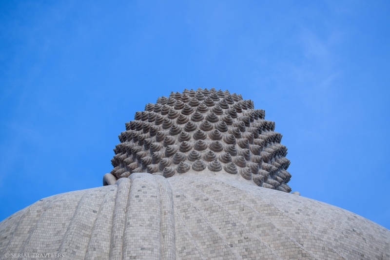 Comme vous pouvez le remarquer, la sculpture n’est pas encore tout à fait terminée (le socle, les escaliers ainsi que le dos de Bouddha sont encore en construction) mais cela n’empêche pas les touristes de déferler sur le point de vue tous les jours. D’ailleurs, sur place, on incite fortement les touristes à faire des dons pour poursuivre la construction.