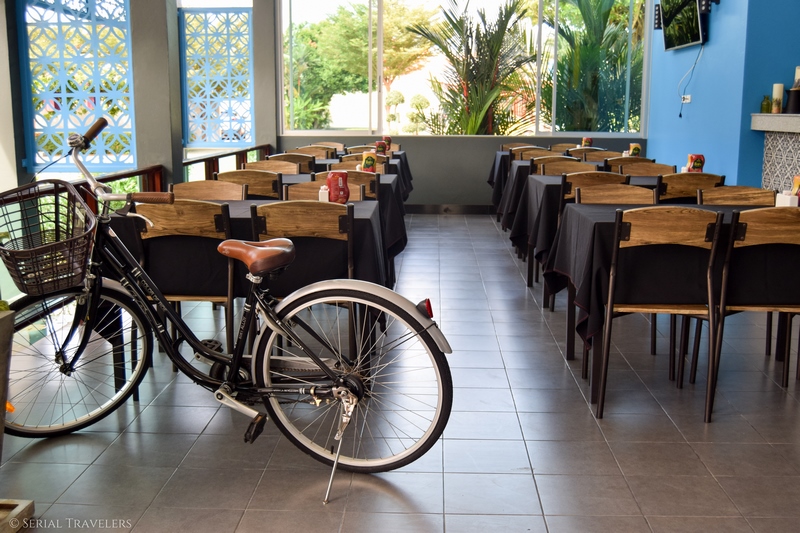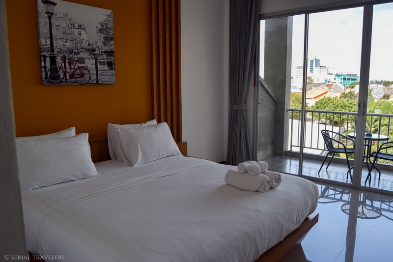 Quelques instants de doute plus tard, on tombe finalement sur un petit complexe hôtelier, complètement à l’écart de la rue, et fidèle à la description : piscine, chambre hyper spacieuse et tout confort !