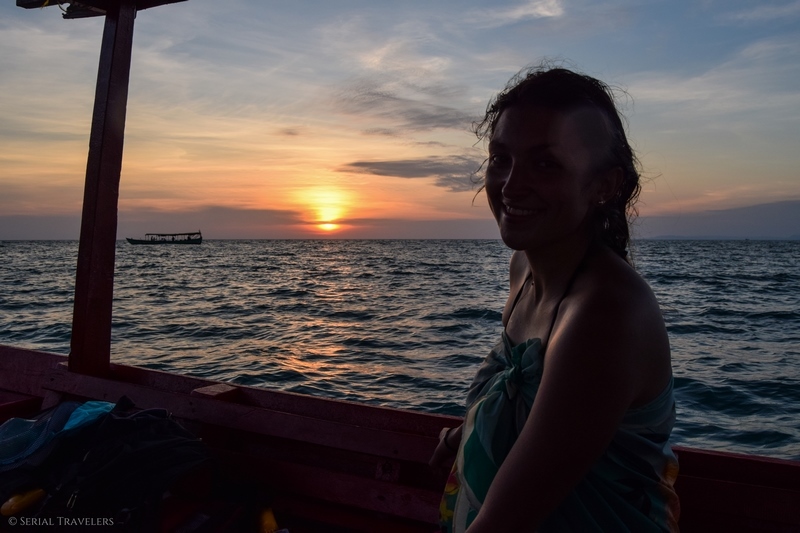 Mais, nous avons bien joué notre coup car en plus d’être récupérés une heure plus tard, nous aurons également la chance de faire un peu de snorkeling au large de Koh Preus et d’assister à un coucher de soleil depuis le bateau !