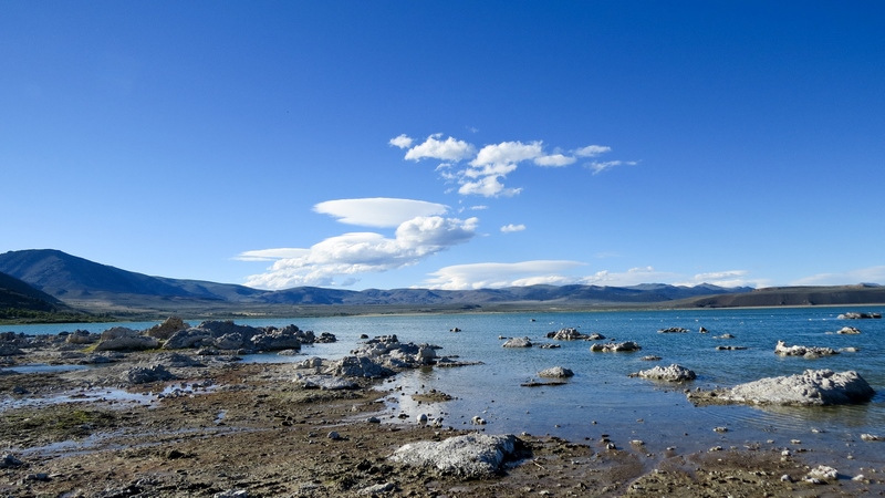 Il s’agit d’un immense lac salé (180 km²) situé en Californie, au pied de la Sierra Nevada. Formé au cœur d’une ancienne caldeira (cuvette formée par la « vidange » de la chambre magmatique d’un volcan), il est situé à quelques kilomètres à peine de Lee Vining.