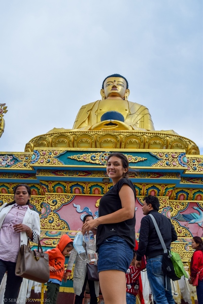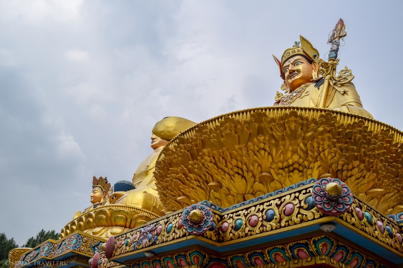 Après cette petite visite sympathique et avoir essuyé une pluie alors que nous étions au sommet de la colline, nous décidons d’aller rapidement visiter l’Amideva Buddha Park, qui est un petit parc gratuit situé juste au bas de la colline, à l’opposé du stupa. On peut y observer 3 statues géantes de Bouddha, dorées et clinquantes !