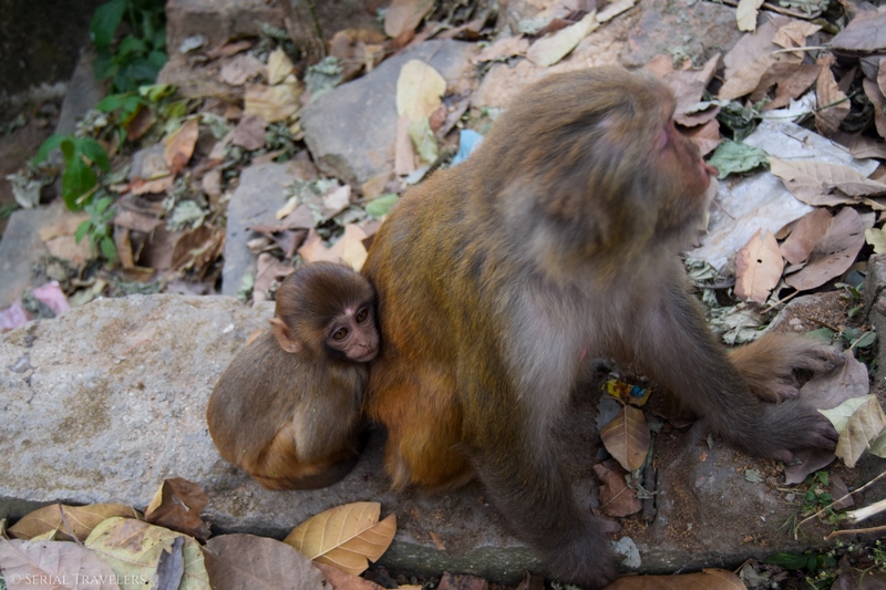 Au prix de quelques efforts et de nombreuses marches, un long escalier de pierre permet d’arriver en haut de la colline et d’admirer ce stupa blanc. C’est ici que vous pourrez observer de nombreux singes (d’où le nom de Monkey Temple), même si c’est loin d’être inédit. En effet, depuis 3 mois on ne voit que des singes aux abords des temples en Asie du Sud-Est !