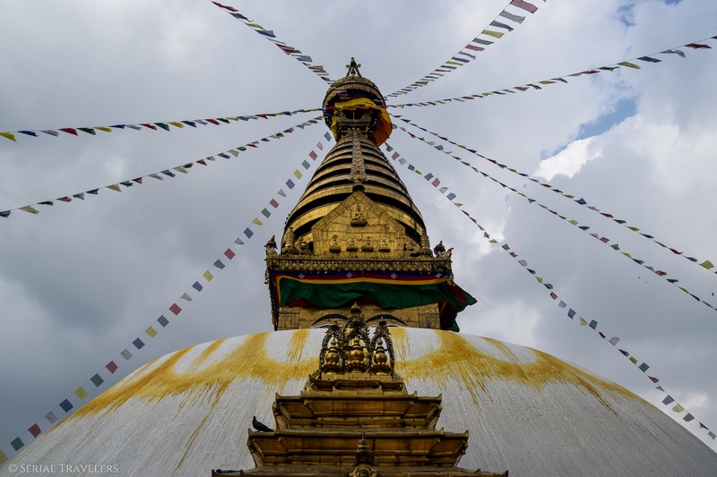 Parmi les sites bouddhistes les plus anciens et les plus sacrés de Katmandou, le stupa de Swayambunath ou temple des singes, a été notre premier vrai contact spirituel dans la capitale népalaise.
