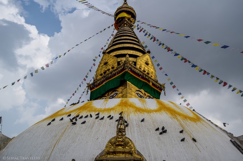 Situé sur une colline surplombant la ville à l’Ouest de Katmandou, ce gigantesque stupa est un lieu de culte très important pour les fidèles bouddhistes de la capitale. D’ailleurs, bien que ce soit un site bouddhiste, le stupa est également un lieu considéré comme saint par les hindouistes.