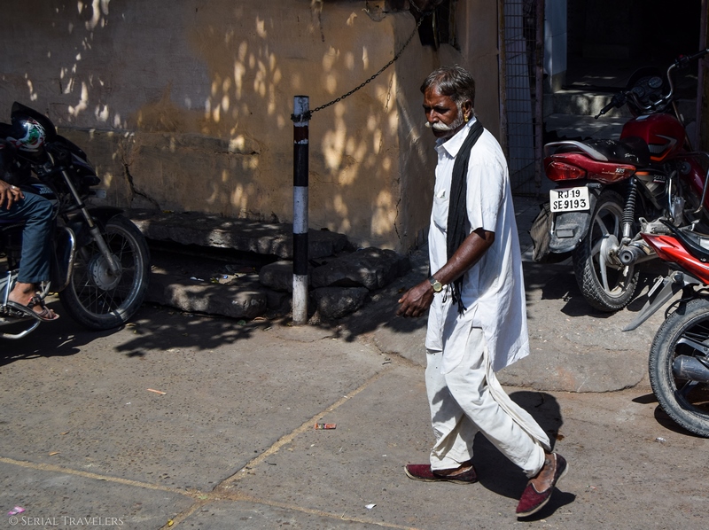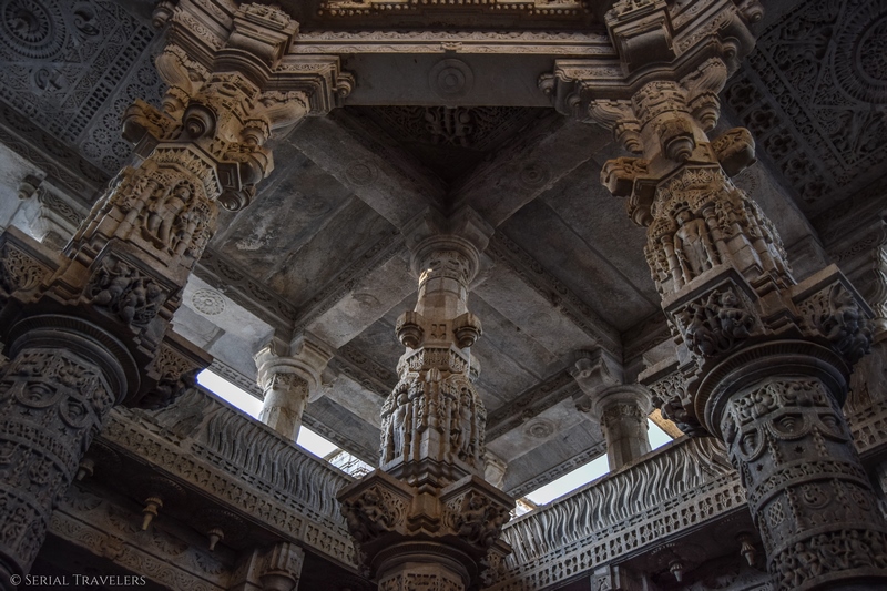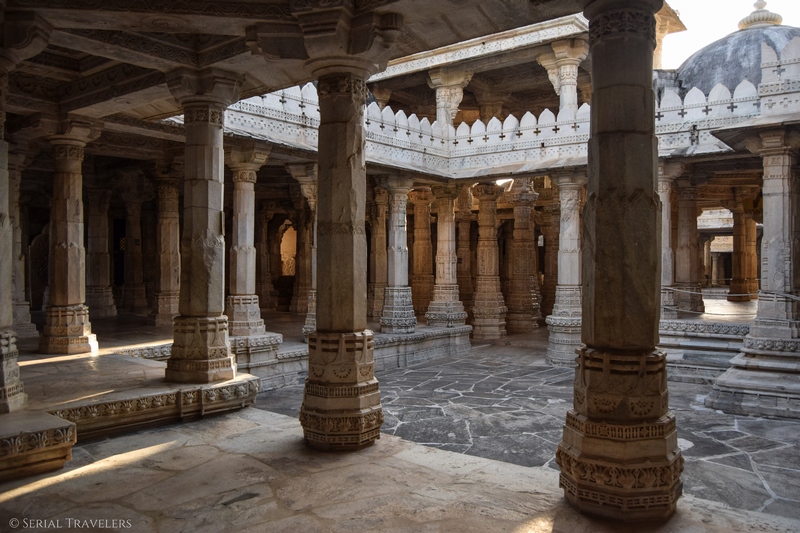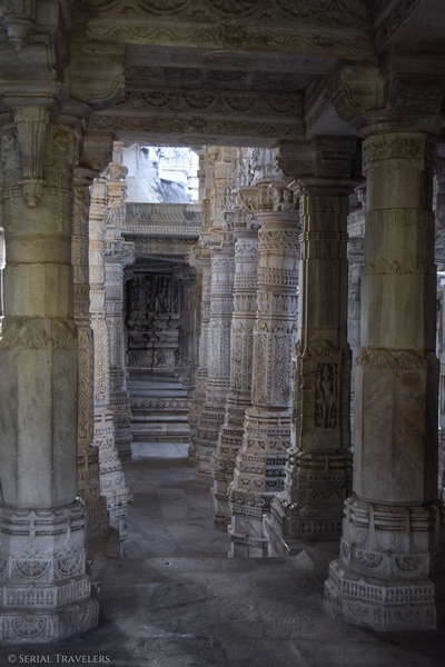 Le plus grand temple jaïn d’Inde est massif à l’extérieur et très raffiné à l’intérieur. Construit uniquement en marbre au XVè siècle, il est totalement symétrique à l’exception d’une colonne tordue volontairement. Elle est penchée pour rappeler que seul Dieu peut atteindre la perfection. Comme nous ne sommes pas restés longtemps, nous ne l’avons pas trouvé mais avons tout de même eu le temps d’apprécier la grandeur, la finesse et la beauté du temple d’Adinath pendant 30 minutes.