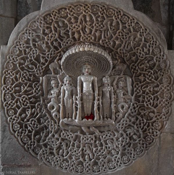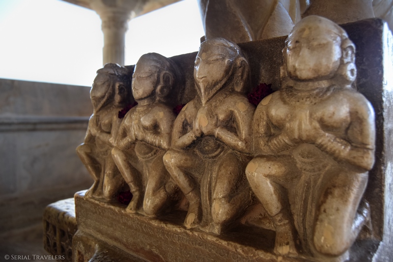 Ce temple est également appelé Chaumukha, ce qui signifie les 4 faces : 4 statues de Tithankara sont tournées vers les points cardinaux. Un tithankara est un être qui a atteint la sagesse ultime et qui est vénéré par les fidèles jaïns. Leur religion est tellement différente de celles que nous connaissions déjà que nous vous expliquons ce qu’est le jaïnisme dans un article dédié.