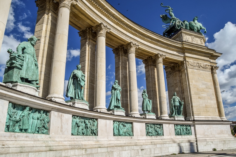 Comme son nom l’indique, la Place des Héros est une place monumentale située côté Pest, non loin des thermes Széchenyi ! Tout comme de nombreux monuments de la capitale hongroise, la construction de ce monument est également issue de la célébration du millénaire de l’arrivée des Magyars dans la plaine hongroise. On vient d’ailleurs sur cette place pour observer tout particulièrement le Monument du Millénaire, trônant au milieu de la Place des Héros, formé d’une colonne de 36 mètres de haut surmontée d’une statue de l’archange Gabriel. Cette colonne est encadrée par deux périptères en demi-cercle abritant les statues des différents chefs Magyars au cours de l’Histoire…