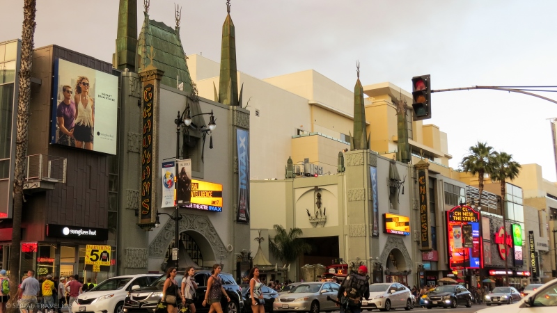 Le Walk of Fame (promenade de la célébrité) est un célèbre trottoir situé sur Hollywood Boulevard, entre Gower Street et La Brea Avenue (une petite partie se situe également sur Vine Street) où se trouvent les noms des célébrités de l’industrie du divertissement, honorés par la Chambre de Commerce de Los Angeles. On y trouve également le Grauman’s Chinese Theatre, une salle de cinéma parmi les plus célèbres du Monde, qui présente la plupart des grandes productions hollywoodiennes en avant-première ! La balade est sympathique, mais sur le Walk of Fame, on remarque surtout la pauvreté, qui s’étale ici sans pudeur. Beaucoup de gens dorment à même le sol, quand d’autres malheureux poussent le peu d’affaires qui leur restent dans des caddies, errant sans but… Le tout, à côté des voitures de luxe rutilantes qui circulent sur Hollywood Boulevard…