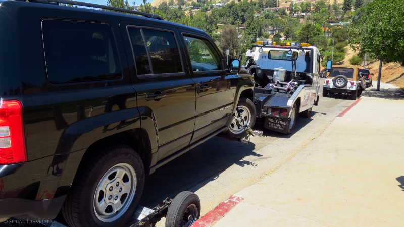 Lorsque Laura crie : « il y a une dépanneuse qui embarque la voiture » ! Un jour après notre course dans l’aéroport d’Amsterdam, nous voilà de nouveau obligés de taper un sprint pour interrompre l’enlèvement de la voiture ! Nous arriverons à rattraper la dépanneuse, mais 2 roues étant soulevées, nous devrons nous acquitter d’une amende de 300$ pour récupérer notre véhicule… Coup dur au démarrage de notre roadtrip 🙁