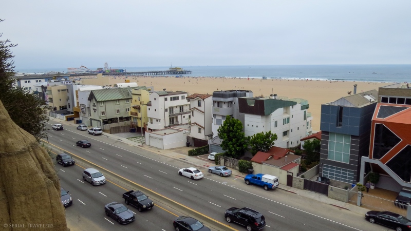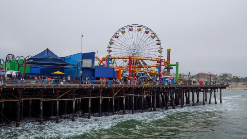 Encore sous le choc après notre « épisode fourrière », nous décidons de rejoindre la plage de Santa Monica cet après-midi, située à l’extrême Ouest de Los Angeles, face à l’océan Pacifique. Nous atteindrons assez péniblement le quartier de Santa Monica après plus d’une heure de route (la joie des embouteillages de Los Angeles). À l’arrivée, nous retrouvons Santa Monica complètement embrumé, alors que nous avions un soleil au beau fixe à Hollywood (à seulement 25 km à vol d’oiseau).