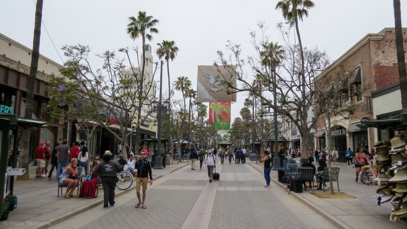 Santa Monica est en fait une ville à part entière, enclavée entre le Pacifique et la ville de Los Angeles, surtout connue pour Pier Santa Monica, une jetée en bois transformée en parc d’attractions, assez photogénique et très fréquentée ! C’est sur cette jetée que se termine la mythique route 66, qui part de Chicago à plus de 3000 km de là ! Third Street Promenade est une rue piétonne bordée de boutique et très animée, située à 2 pas de Pier Santa Monica !