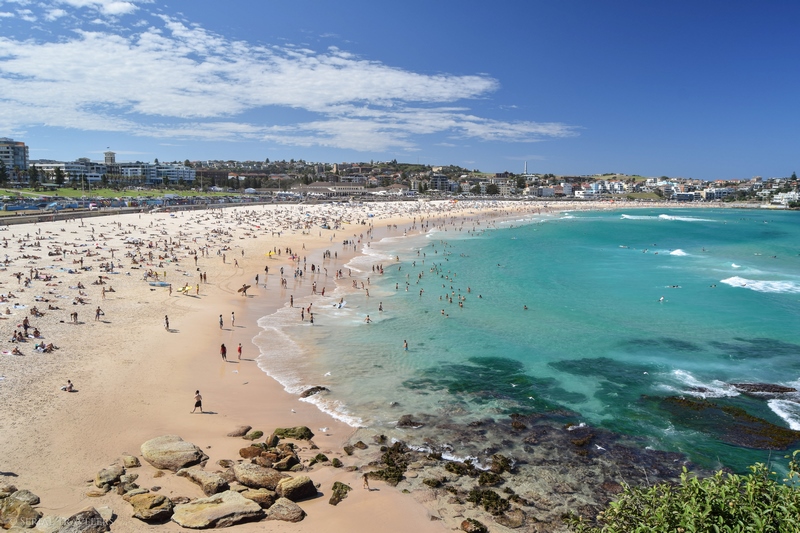 La voilà enfin, la plus fameuse plage de Sydney, et l’une des plus connues au Monde ! Malheureusement, sa notoriété est telle que la plage est bondée de monde en ce milieu d’après-midi. Cette plage est réputée pour son sable fin et ses nombreux rouleaux, qui permettent de surfer et aux débutants de tenter de rester debout sur leurs planches ! Dans la rue commerçante faisant face à la plage, vous pourrez trouver tout ce dont un bon Sydneysider se doit d’acheter : des fringues de surf, des planches et bien sûr, des tas de stands de fast-food !