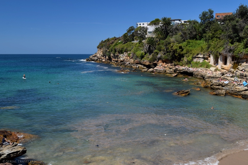 Après 40 minutes de trajet, nous arrivons à Coogee Beach et nous tombons directement sous le charme malgré l’affluence déjà importante en fin de matinée : plage de sable blanc, eau turquoise cristalline et grand ciel bleu ! Tout à droite de la plage se trouve une piscine artificielle, la Ross Jones Rockpool, où l’on peut se baigner dans de l’eau de mer 🙂