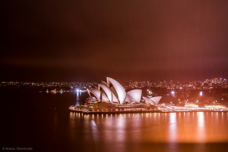 Après la visite nocturne de The Rocks, nous terminerons la soirée en traversant l’Harbour Bridge à pied, pour effectuer des photos de Port Jackson de nuit, et avoir l’Opera House sous un autre angle ! Littéralement, le pont du port, encore appelé pont de Sydney est un pont en arc métallique enjambant la baie de Sydney. Figurez-vous qu’il a été construit par le Français Georges Camille Imbault en 1932 ! Jusqu’en 1967, le pont est demeuré la plus haute structure de Sydney et il reste jusqu’à maintenant le pont le plus large du monde ! En effet, des trains, des bus et des voitures passent dessus par milliers chaque jour ! Moyennant 300 dollars australiens/pers. (~194 €), vous pourrez entreprendre l’ascension jusqu’au sommet de l’arche, située à 134 mètres au-dessus de l’eau !