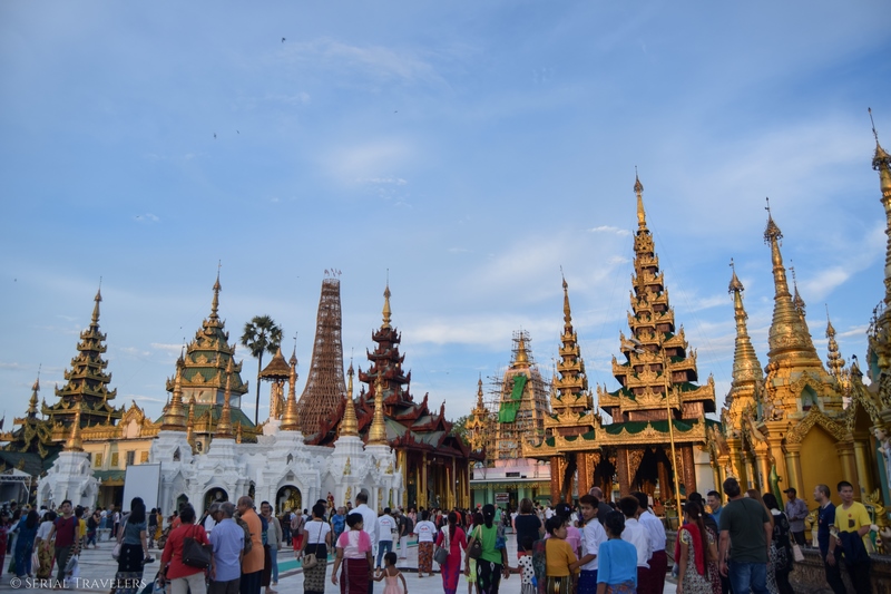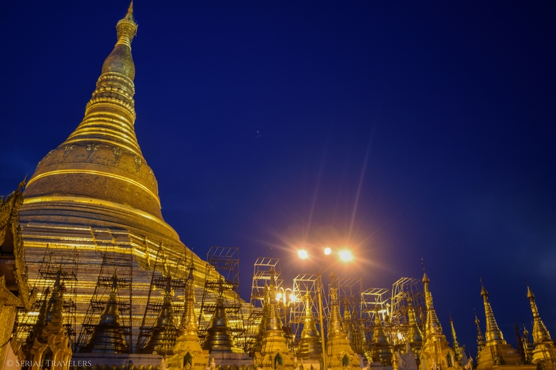 Vers 16H, nous sautons dans un taxi pour rejoindre Shwedagon, la plus grande pagode du pays ! Outre sa taille imposante, la pagode Swedagon est le temple bouddhiste le plus important du Myanmar, car elle abrite des reliques et des cheveux d’anciens Bouddhas ! C’est un fait très rare pour un lieu de culte bouddhiste. WAHOU, elle nous a tellement impressionné que nous lui avons concocté un petit article rien que pour elle 😊