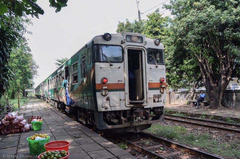 - Les tickets s’achètent sur le quai et non au guichet à l’entrée de la gare (quai 7 à la station centrale de Yangon)