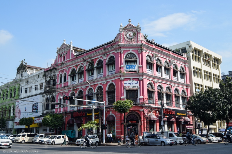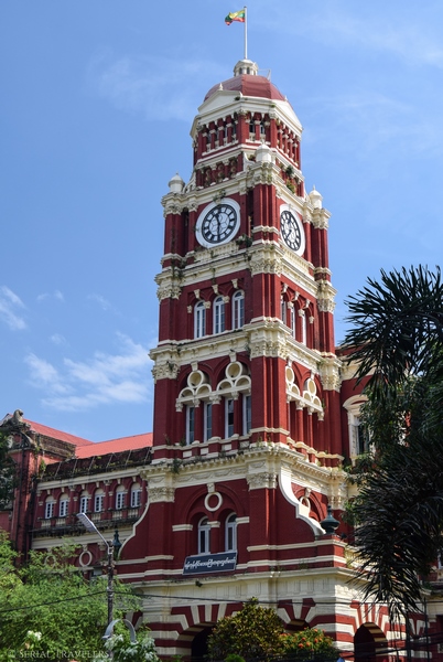 Le palais de justice est inratable de par sa couleur et son architecture ! Peu visible depuis le parc Maha Bandula, c’est depuis Pansodah street que l’on peut vraiment mesurer sa grandeur.