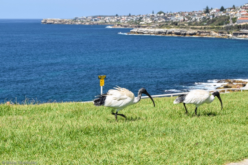 - Des ibis à cou noir à Coogee Beach, Sydney, que l’on peut rencontrer dans à peu près tous les jardins botaniques des villes du Sud-Est