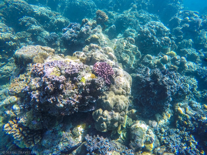 Nous clôturons cet article par une note responsable et de bon sens. Depuis le début du voyage, l’attitude de nombreux touristes nous dépasse par leur manque de respect, à la fois envers la population et l’environnement. Dans l’eau, leur comportement empire ! Toucher les étoiles de mer, les poissons, les tortues, creuser avec un bâton, sortir des éléments marins de l’eau, marcher sur les coraux et on en passe !
