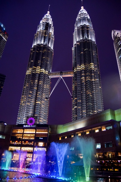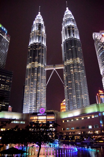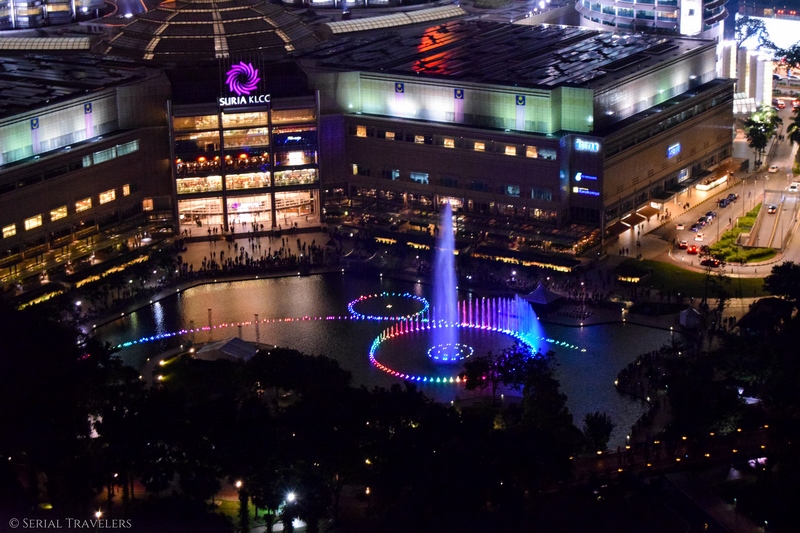 Première constatation, à l’instar de nombreuses villes, KL est plus belle la nuit venue. Rendez-vous donc pour le coucher du soleil dès 18H30 au KLCC Park. Un pont enjambe un lac artificiel et se situant directement face aux tours. Au pied des tours et du mall, se trouve un autre lac où dansent des fontaines la nuit venue. Ce point offre une superbe vue sur le coucher de soleil, les tours et les fontaines. Une fois la nuit tombée, vous pourrez y admirer le spectacle des fontaines de 19H30 à 20H30.