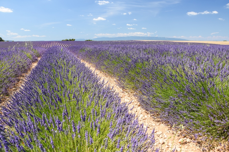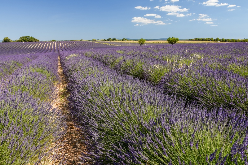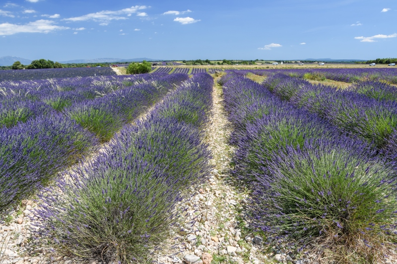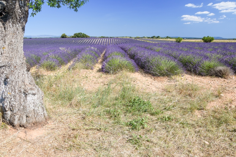Symbole de la Provence par excellence, la lavande était déjà cultivée dans l’Antiquité, pour conserver le linge et parfumer les bains ! Au Moyen-Âge, on utilisera ses fleurs violettes au parfum délicat pour entrer dans la composition des parfums ou même de médicaments. Mais, l’exploitation du végétal ne se développera réellement qu’à partir du XIXème siècle, notamment sur le Plateau de Valensole, qui tire son nom de la commune du même nom. Situé au Sud-Ouest de Digne-les-Bains dans le département des Alpes-de-Haute-Provence (04), le Plateau de Valensole est coincé entre les vallées de la Durance à l’Ouest, de l’Asse au Nord et du Lac de Sainte-Croix & des Gorges du Verdon au Sud.