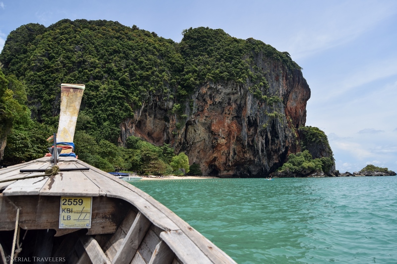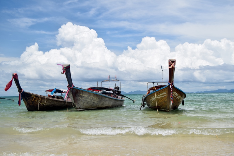 - Trajet A/R en long tail boat depuis Ao Nang et l’une des 3 plages : 400 baths/pers. (~10 €). Les tickets sont à acheter dans une cahute située sur le front de mer, vous ne pouvez pas la rater !