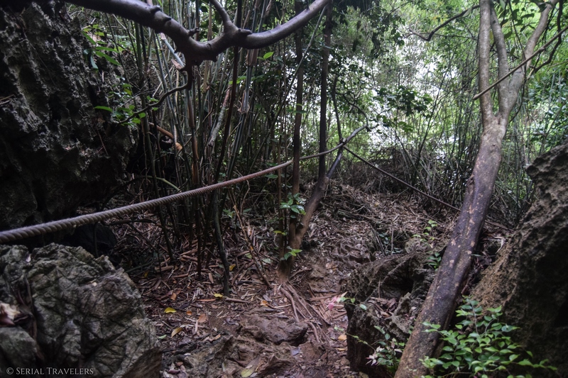 On se dit alors qu’on aurait mieux fait de descendre à Railay Beach West comme les autres, car on ne voit pas trop comment rejoindre l’autre plage autrement que par la mer… Heureusement, on rencontre un groupe de grimpeurs qui nous indique un chemin caché longeant la falaise, pour atteindre Railay en même pas 10 minutes.