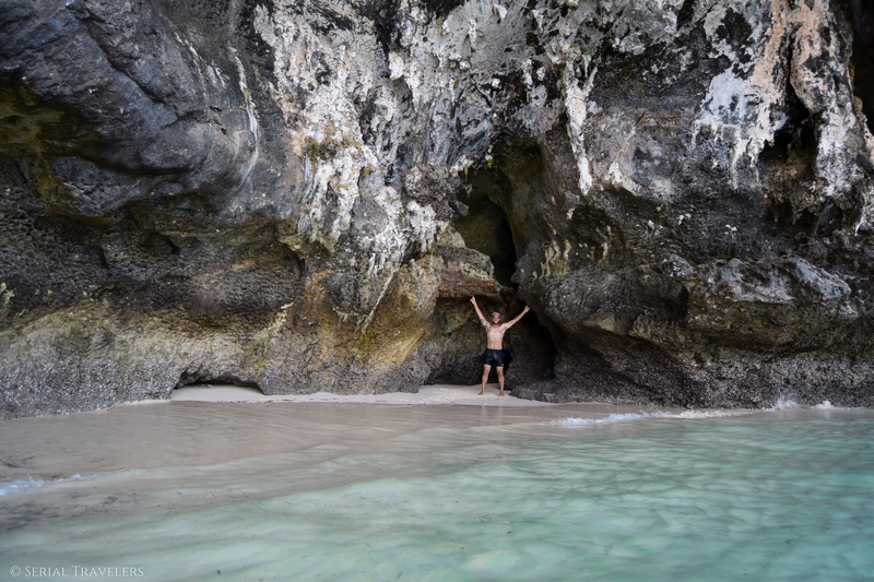 En arrivant à Phra Nang, le paysage est saisissant : plus sauvage que Railay et tout aussi belle, une partie de la plage est abritée par une falaise karstique servant de grotte. Malheureusement, il est déjà midi passé et la plage est un peu plus occupée que la précédente.