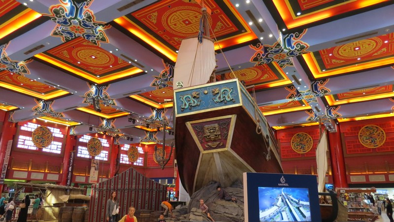 - Ibn Battuta Mall (à prononcer « Iben Batouta ») : notre préféré, car ici les architectes ont fait un effort énorme sur la décoration ! Vous souhaitez faire un tour du Moyen-Orient et de l’Asie, mais vous n’avez que 3H devant vous pour votre après-midi shopping ? Ce mall est fait pour vous ! Chaque partie du centre commercial est dédiée à une région et dispose d’infrastructures immenses à l’instar d’une joncque à échelle réelle ou la reconstitution d’un temple égyptien ! A faire sans hésiter, nous, on a adoré !