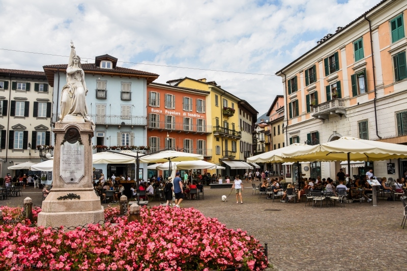 Après le resto, nous revenons vers le centre-ville de Verbania (qui tire son nom de Verbano, la verveine en italien) aux alentours de 14H. Surnommée « le jardin sur le lac », Verbania est la plus grande ville du lac Majeur avec plus de 30 000 habitants. Verbania fut autrefois le lieu de villégiature privilégié par la noblesse et la bourgeoisie du XXème siècle… Malheureusement, la ville fut peu à peu délaissée au profit de Stresa, située juste en face. La météo n’étant plus tellement de la partie, nous ne resterons pas longtemps sur place, uniquement le temps d’arpenter les ruelles du centre-ville pour arriver jusqu’à la basilique San Vittore et revenir.