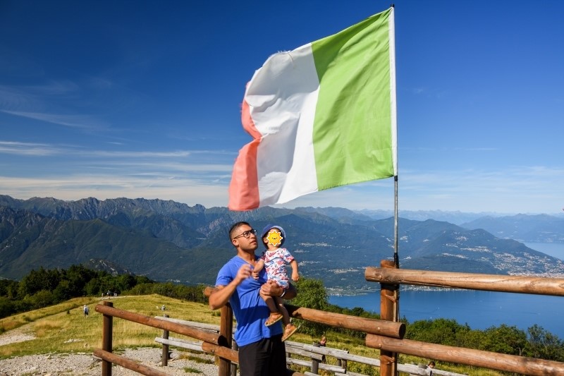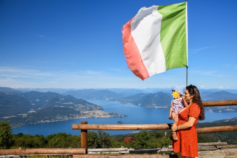 Nous reprenons le bateau depuis Isola Bella pour revenir sur Stresa vers 15H. Dix minutes plus tard, nous voilà déjà sur la route à slalomer dans les virages menant au sommet du Mont Mottarone ! Culminant à 1 491 mètres d’altitude, cette montagne est située entre le lac Majeur et le lac d’Orta. Au sommet, on trouve une station de ski avec ses remontées mécaniques, une luge d’été ainsi que la station du funiculaire qui reliait Stresa, avant l’accident de mai 2021… Mais surtout, on accède à un belvédère donnant une vue imprenable sur la région ! Tout cela au prix d’une ascension bien raide de plusieurs minutes avec la poussette, que nous réussirons avec brio 🙂 Finalement, nous reviendrons sur Stresa sur les coups de 18H et profiterons d’une petite baignade dans le lac avec bébé pour terminer la journée.