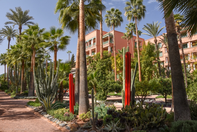 Le sultan dessinera les jardins pour son autre fils, le prince Mamoun et lui offrira comme cadeau de mariage. Le prince nomme alors le jardin « Arsal El Mamoun », qui deviendra bientôt « Arsat Mamounia ». À la base, nous n’avions pas du tout prévu de visiter ce palace, mais en passant devant pour nous rendre dans le quartier de l’Hivernage, nous avons demandé s’il était possible de rentrer prendre des photos. Question à laquelle on nous a répondu par l’affirmative 🙂