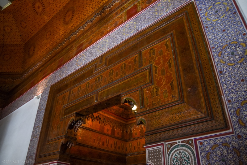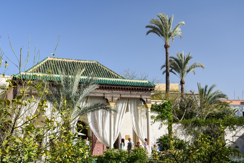 Localisé à proximité du palais El Badi, le palais de la Bahia (littéralement « la belle » ou « la brillante » en arabe) est un ancien palais de style mauresque/islamique datant du XIXème siècle. Entre 1866 et 1867, le grand Vizir Si Moussa (ministre ou conseiller) du sultan Hassan 1er fait construire la partie Nord de ce gigantesque palais de 8 hectares, prenant la forme d’un riad, au Sud-Est de la médina. À l’époque, il s’agit du plus grand et du plus fastueux riad de tout le Maroc ! Ahmed Ben Moussa, fils de Si Moussa, fera agrandir la partie Sud pendant son règne en tant que régent du sultan du Maroc entre 1894 et 1900.