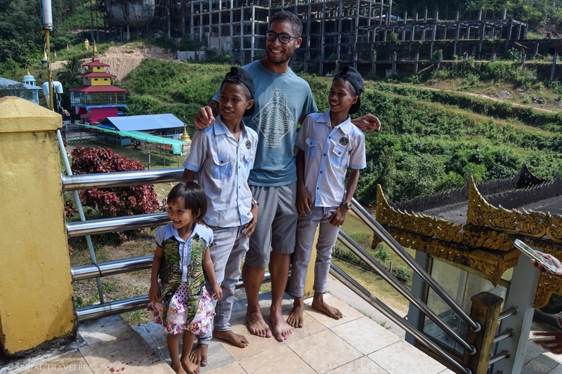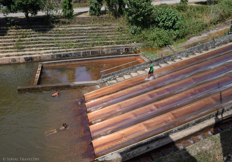 Du coup, on a préféré passer notre temps à faire des photos avec les locaux et regarder des enfants descendre le toboggan géant à l’entrée du « temple ».
