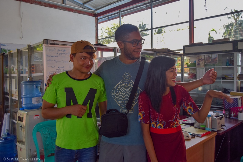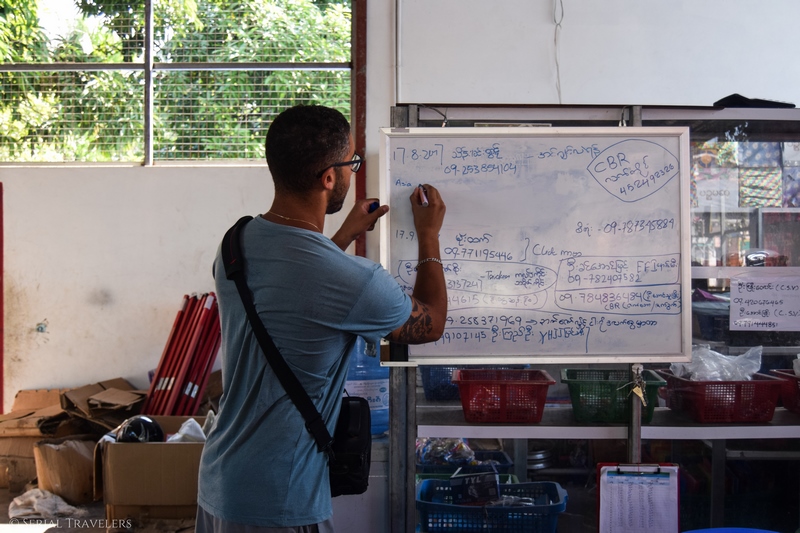 On râle un peu pour le fun après le chauffeur, mais on est déjà occupés à raler auprès des employés de la guesthouse qui ne trouvent pas notre réservation, et qui ne nous attendaient donc pas… On commence à avoir l’habitude au Myanmar, dans quasiment 80% des cas, notre réservation Booking ou Agoda n’arrive jamais jusqu’à l’hébergement.