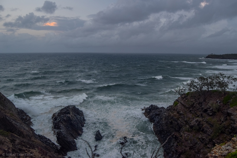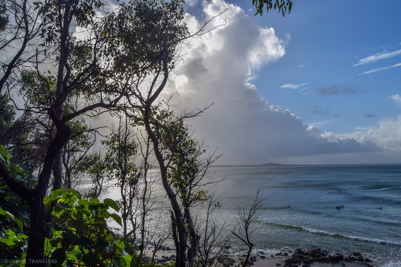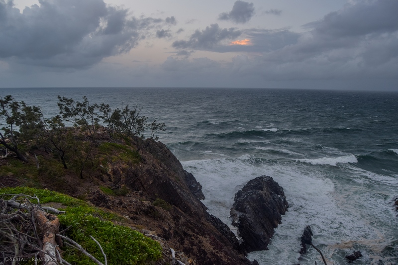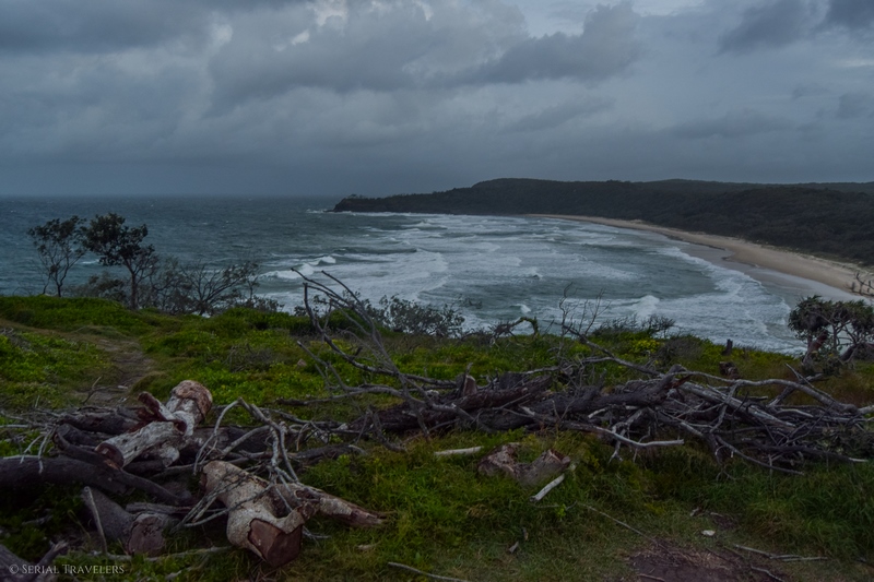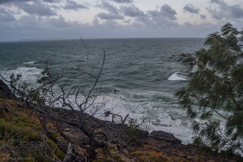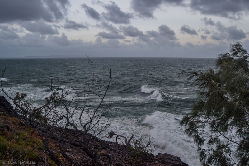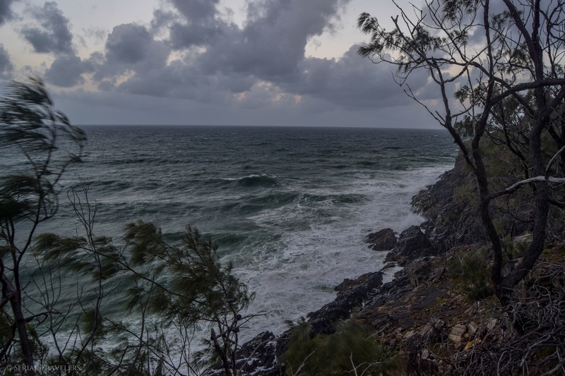 Puisque les places sont chères dans agglomérations entourant le parc, nous nous éloignerons un peu de Noosa Heads et nous atterrirons comme d’habitude sur le parking d’un McDonald’s, à Coolum Beach, une commune située à 20 km au Sud du parc. Sur le chemin, nous verrons les effets de la tempête qui commençait à se former au loin sur l’océan, en évitant des arbres arrachés et étalés sur la route !