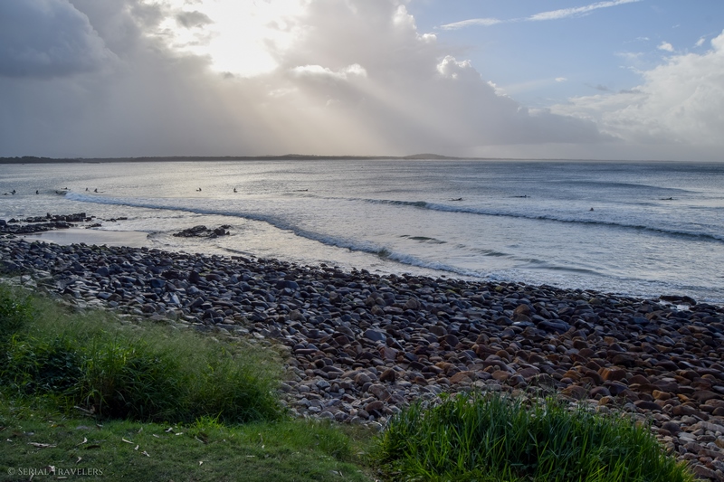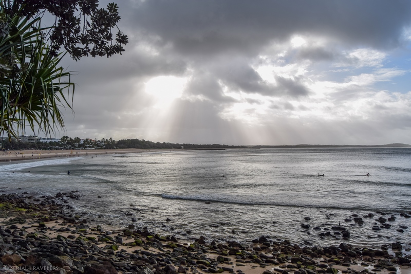 Toutefois, nous n’arriverons dans le parc qu’après 16H, non sans avoir galéré dans la région résidentielle de Noosa, pour savoir dans quelle direction se rendre… Profitant d’une brusque averse pour nous arrêter à Castaways Beach (7 km au Sud de Noosa Heads), de gentils samaritains nous indiqueront la marche à suivre pour trouver le chemin vers le parc 🙂