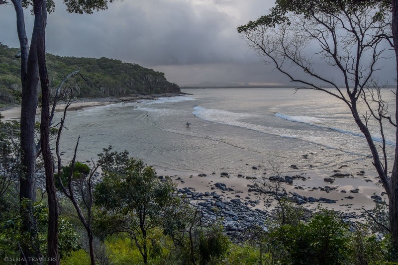 Little Cove est une petite plage située à 5 min à pied de la plage principale de Noosa Heads et également à quelques pas de l’entrée du parc, où se trouve d’ailleurs un parking, où peuvent stationner voitures et les campervans (nous l’avons appris trop tard bien sûr…)
