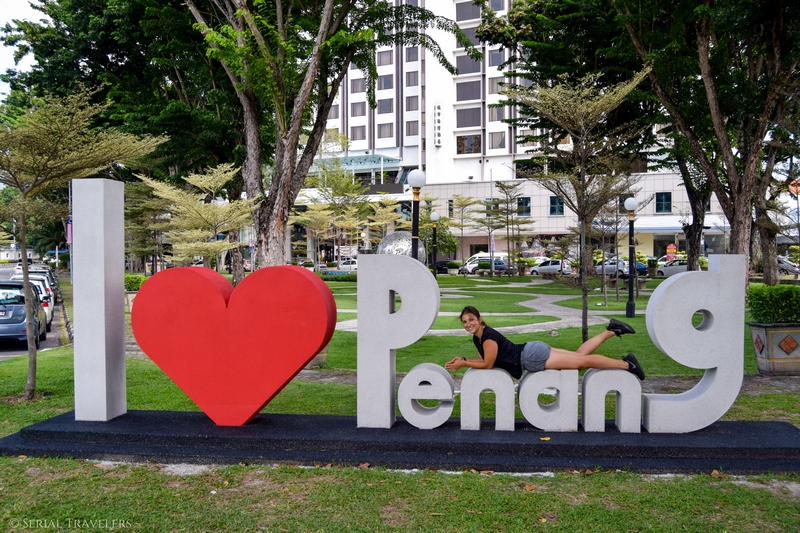 Pas loin de la Maison Bleue, vous trouverez le signe I Love Penang. En bons touristes que nous sommes, nous ne manquons pas de réaliser notre petite photo 🙂 .