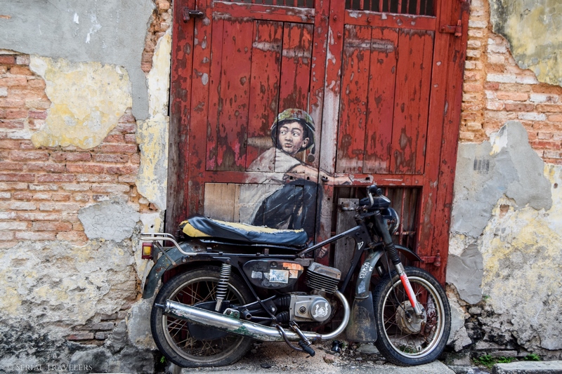 Le samedi 9 septembre 2017, nous partons à l’assaut des oeuvres de Street Art les plus connues à l’aide d’une carte donnée par l’hôtel. Les œuvres sont vivantes, et au fur-et-à-mesure, elles se retrouvent effacées ou recouvertes. Les localisations ne sont donc valables qu’à la période où nous avons été à Penang…