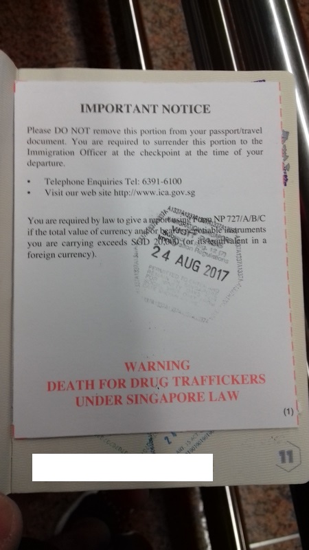 Au poste-frontière singapourien, nous devons descendre du bus et passer l’immigration munis uniquement de notre passeport et de la fiche qui nous a été remise à notre arrivée à l’aéroport 2 jours auparavant. Vous devez absolument conserver ce papier dès lors que vous arrivez sur le territoire de Singapour jusqu’à votre sortie ! Il s’agit d’une simple formalité, tout se passe en moins de 10 minutes et nous remontons dans le bus.